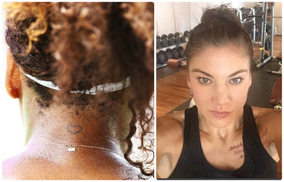 Η κατά πολλούς κορυφαία τενίστρια όλων των εποχών, μπορεί να μην φαίνεται λόγω παρουσιαστικού, αλλά είναι επίσης μια ευαίσθητη ψυχή και φαίνεται στο τατουάζ της, που είναι μια μικρή καρδιά πίσω από το λαιμό της. Όσο για την δυο φορές χρυσή Ολυμπιονίκης στο ποδόσφαιρο, έχει ένα τατουάζ στο στέρνο της, το οποίο είναι ένα μεγάλο μήνυμα έμπνευσης για την ίδια.