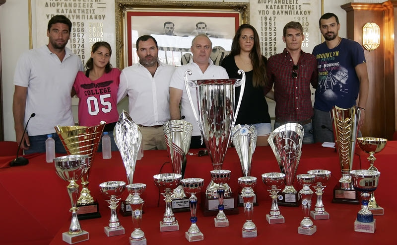 Εδώ μπροστά μας βρίσκονται τα 19 τρόπαια από τους 19 τίτλους που κατέκτησαν οι αγωνιστικές μας ομάδες την προηγούμενη σεζόν. 19 τρόπαια, ίσως, να μην μπορούν να κατακτήσουν άλλα σωματεία σε ολόκληρη την ιστορία τους. Είναι τα 19 τρόπαια του Ερασιτέχνη. Προσθέτοντας τα τρόπαια του ποδοσφαίρου και του μπάσκετ η οικογένεια του Ολυμπιακού είναι πολύ υπερήφανη για τα επιτεύγματα της περσινής αγωνιστικής περιόδου και θα πρέπει να είναι πολύ αισιόδοξη για τη νέα χρονιά.