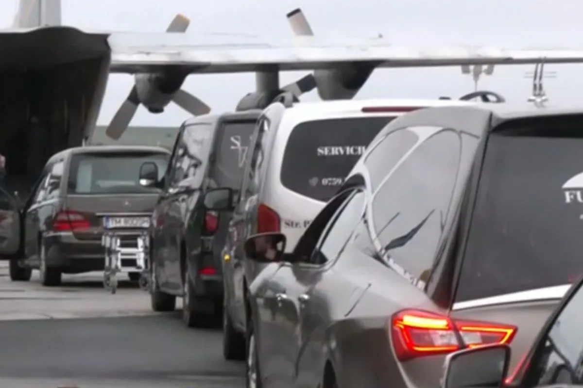 Το C-130 παρέλαβε τις σορούς των επτά αδικοχαμένων οπαδών του ΠΑΟΚ στο αεροδρόμιο της Τιμισοάρα, ενώ τελέστηκε τρισάγιο στη μνήμη τους.