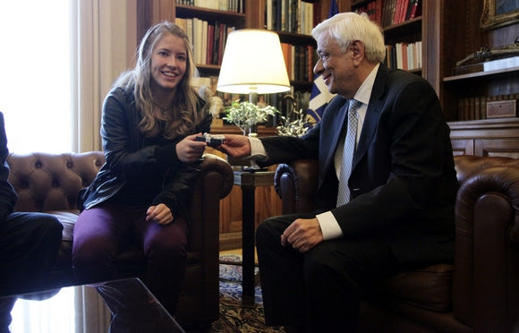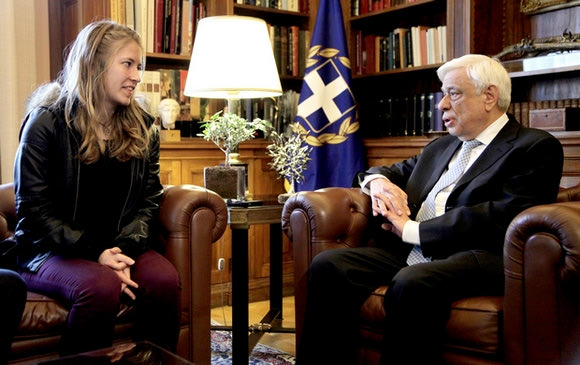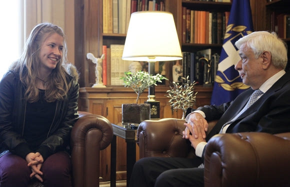 Λίγο αργότερα, η νεαρή πρωταθλήτρια μετέβη στο Προεδρικό Μέγαρο και συνάντησε τον Προκόπη Παυλόπουλο. Ο Πρόεδρος της Δημοκρατίας, αφού την συνεχάρη για την κορυφαία διάκριση, την χαρακτήρισε υπόδειγμα αριστείας και στο σκάκι, αλλά και στο σχολείο.