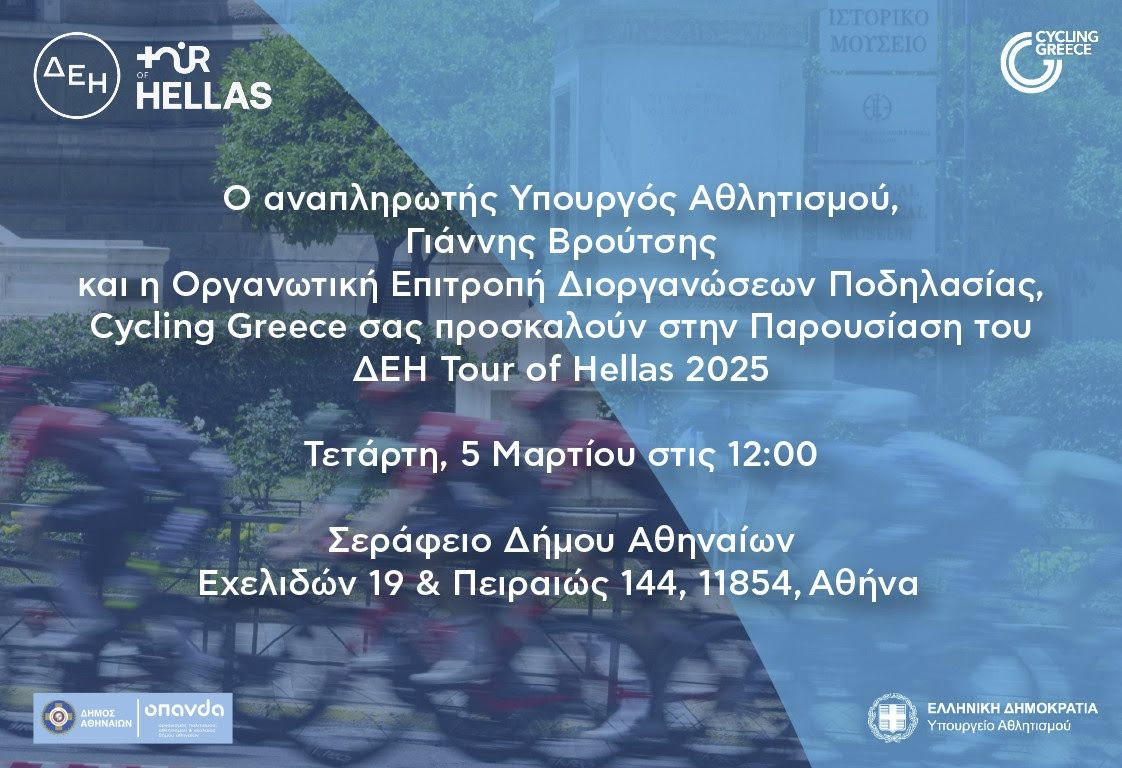 Την Τετάρτη 5 Μαρτίου θα πραγματοποιηθεί στο Σεράφειο η παρουσίαση του ΔΕΗ Tour Of Hellas 2025.