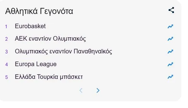 Από τα αθλητικά γεγονότα της χρονιάς ξεχωρίζει το EuroBasket, δεύτερη είναι η μάχη ΑΕΚ και Ολυμπιακού και τρίτη του Ολυμπιακού με τον Παναθηναϊκό. Τέταρτο στη μηχανή αναζήτησης ήταν το Europa League και πέμπτος ο αγώνας μπάσκετ της Ελλάδας με την Τουρκία.