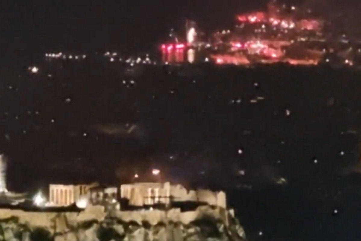 Οι φίλοι του Ολυμπιακού δημιούργησαν φαντασμαγορική εικόνα και στην Αθήνα με πυροτεχνήματα και καπνογόνα για την αγαπημένη τους ομάδα κοντά στην Ακρόπολη.