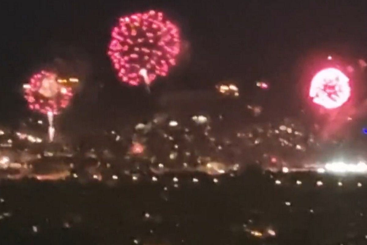 Μάλιστα στο βάθος φαίνονται οι εντυπωσιακές εικόνες και από τον Πειραιά, όπου στήθηκε μια κανονική γιορτή από τους φίλους των ερυθρολεύκων.
