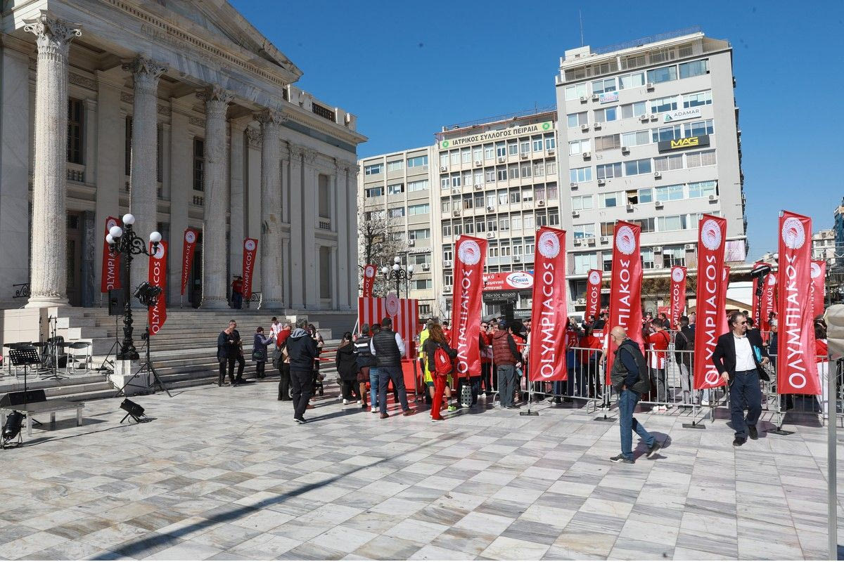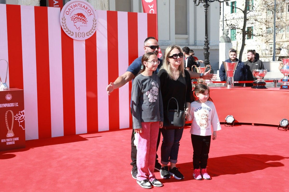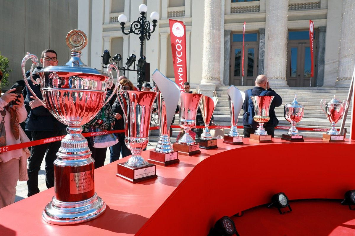 Εκατοντάδες είναι οι φίλοι των “ερυθρόλευκων” που έχουν σπεύσει στο σημείο ώστε να φωτογραφηθούν με τα 19 ευρωπαϊκά τρόπαια της ομάδας του Πειραιά.