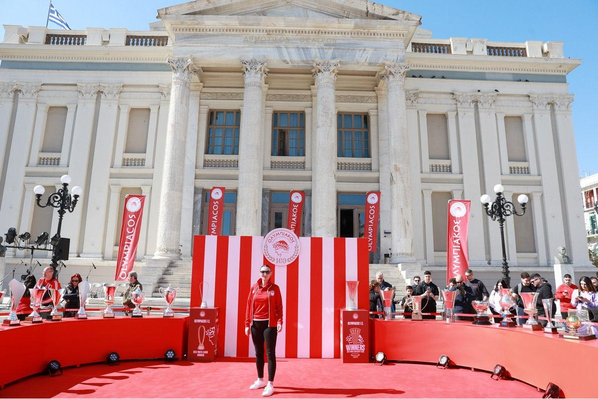 100 Χρόνια Ολυμπιακός: Κοσμοσυρροή στο Δημοτικό Θέατρο Πειραιά για τα 19 ευρωπαϊκά τρόπαια