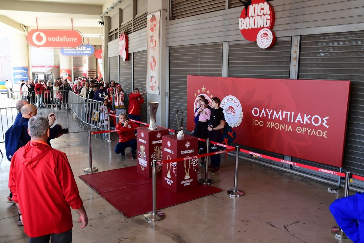 Οι εορτασμοί για τα 100 χρόνια του Ολυμπιακού έχουν αρχίσει και όπως είχε αναφερθεί στη συνέντευξη Τύπου της Τρίτης (04/03), στον εξωτερικό χώρο του “Γ. Καραϊσκάκης” έχουν δημιουργηθεί θεματικά πάρκα για μικρούς και μεγάλους, ενώ ο κόσμος είχε τη δυνατότητα να δει από κοντά τόσο το τρόπαιο του Conference League, όσο και αυτό του Youth League.