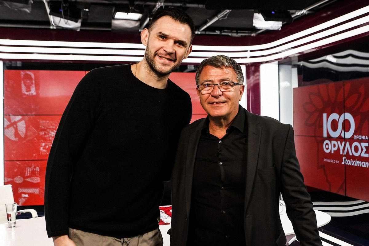 Συνάντηση γιγάντων στο στούντιο του SPORT24 για τα 100 χρόνια του Ολυμπιακού. Ο αρχηγός της μπασκετικής ομάδας, Κώστας Παπανικολάου, διαδέχθηκε τον άλλοτε ποδοσφαιριστή προπονητή του ποδοσφαιρικού Ολυμπιακού στο studio του SPORT24.