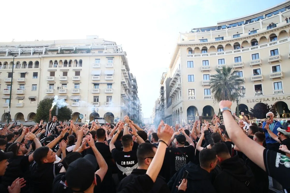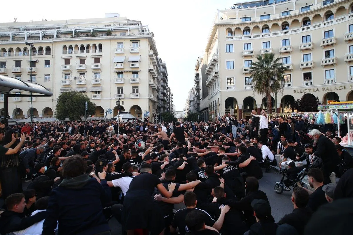 Φωτογραφίες με τον κόσμο του ΠΑΟΚ στην πλατεία Αριστοτέλους: