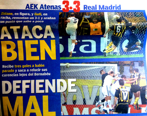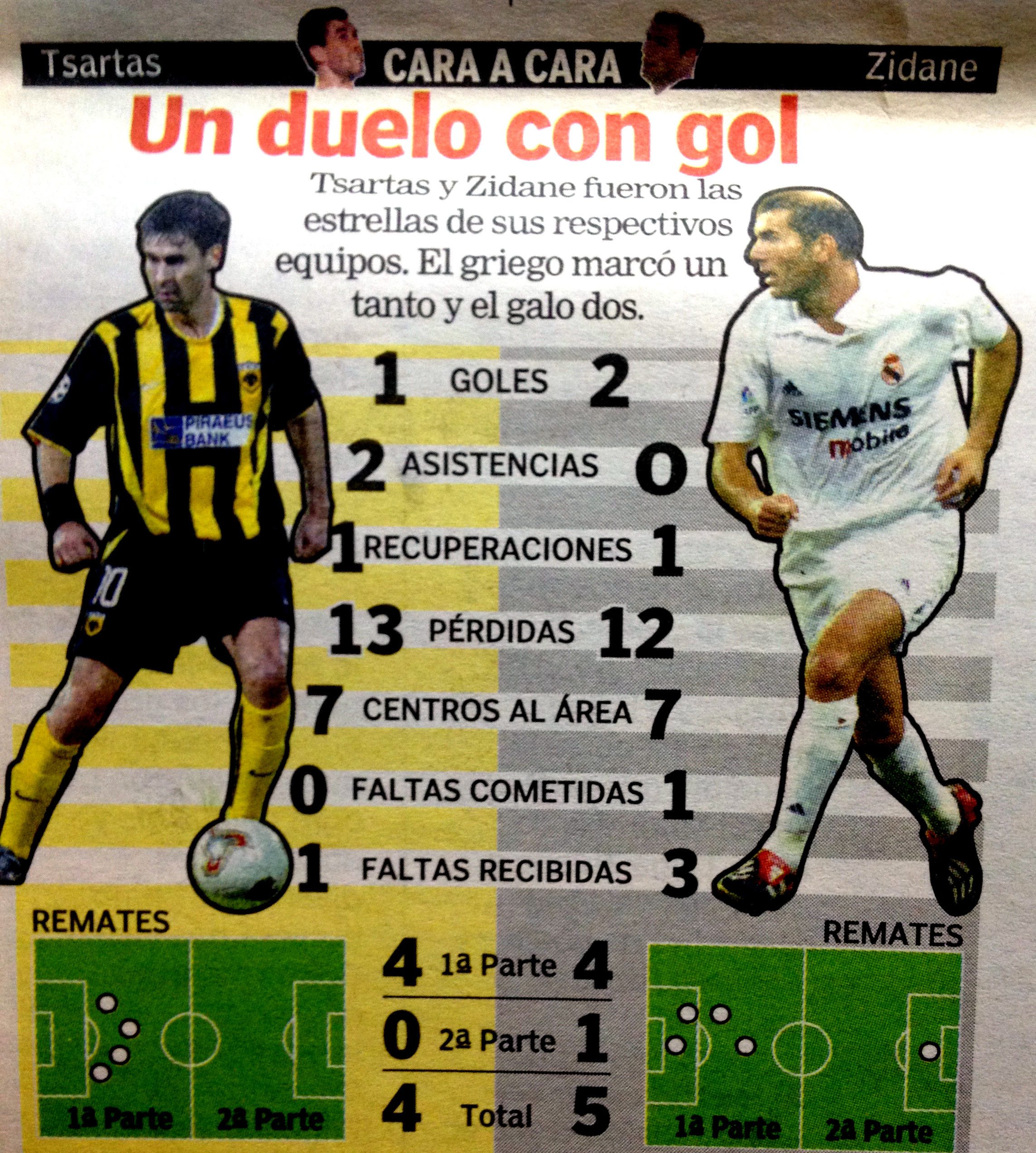6. Δύο από τα μεγαλύτερα δεκάρια που πέρασαν από τα Ευρωπαϊκά γήπεδα. Ο ένας παγκοσμίου φήμης Ζινεντίν Ζιντάν και ο άλλος ο δικός μας μάγος Βασίλης Τσιάρτας. Το πρωτοσέλιδο της Marca είχε γράψει για το ματς στην Ν. Φιλαδέλφεια: “Τσάρτας εναντίον Ζιντάν 3-3”