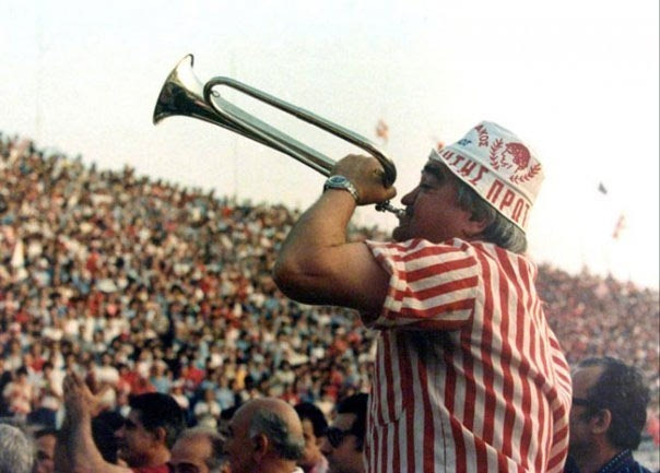Τα χέρια σηκώνονταν ψηλά! Εκείνος έπαιζε με την τροπέτα του το γνωστό “πολεμικό” ρυθμό για να ακολουθήσουν έπειτα οι οπαδοί με το γνωστό “Ολυμπιακός, Ολυμπιακός, Ολυμπιακός…” ή Ελλάς, Ελλάς, Ελλάς… ανάλογα.