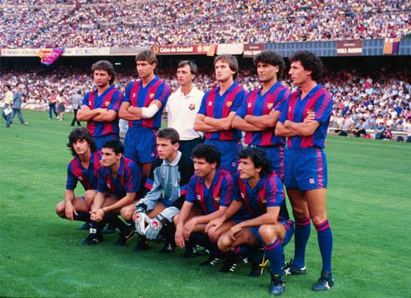 Τα καινούργια αποκτήματα της Μπαρτσελόνα το καλοκαίρι του 1988. Όρθιος, δεύτερος από αριστερά ο Χούλιο Σαλίνας και ακριβώς μπροστά του, ο Ερνέστο Βαλβέρδε