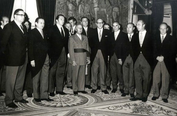 Η διοίκηση της Μπαρτσελόνα στο προεδρικό μέγαρο με τον δικτάτορα Φράνκο στη μέση. Μια “τελετή” από την οποία απουσιάζουν εντελώς τα χαμόγελα (1974)