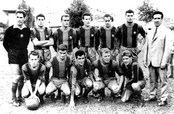 Φωτογραφία της Μπαρτσελόνα το 1958. Δεξιά όρθιος ο Ελένιο Ερέρα και δεύτερος από δεξιά, στην μπροστινή σειρά, ο Λάζλο Κουμπάλα