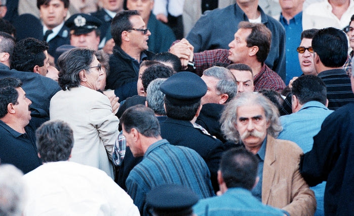 Το 1995 στο τελικό του Κυπέλλου Ελλάδος με αντίπαλο την ΑΕΚ μετά από σοβαρά επεισόδια, στο ημίχρονο ο “ισχυρός άνδρας” του Παναθηναϊκού τα έβαλε και με τις αστυνομικές αρχές μετά από ένα “σπρώξιμο” ενός αστυνομικού. Το 1999 και πάλι κόντρα στην “Ενωση” τα επεισόδια μεταφέρθηκαν από την εξέδρα στους επίσημους και ο “καπετάνιος” είχε μερικές σπρωξιές από φίλους της ΑΕΚ και με την λήξη το διάλογο με τον Στράτο Γιδόπουλο, τόνισε: