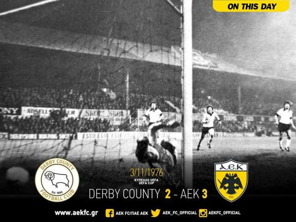 Η σεζόν 1976-77 ήταν μία από αυτές που γράφτηκαν «χρυσές» σελίδες στην ιστορία της ΑΕΚ, όπως η νίκη κόντρα στην Ντέρμπι Κάουντι σαν σήμερα πριν 39 χρόνια στην Αγγλία με 3-2 και η πρόκριση στον τρίτο γύρο του Κυπέλλου ΟΥΕΦΑ.