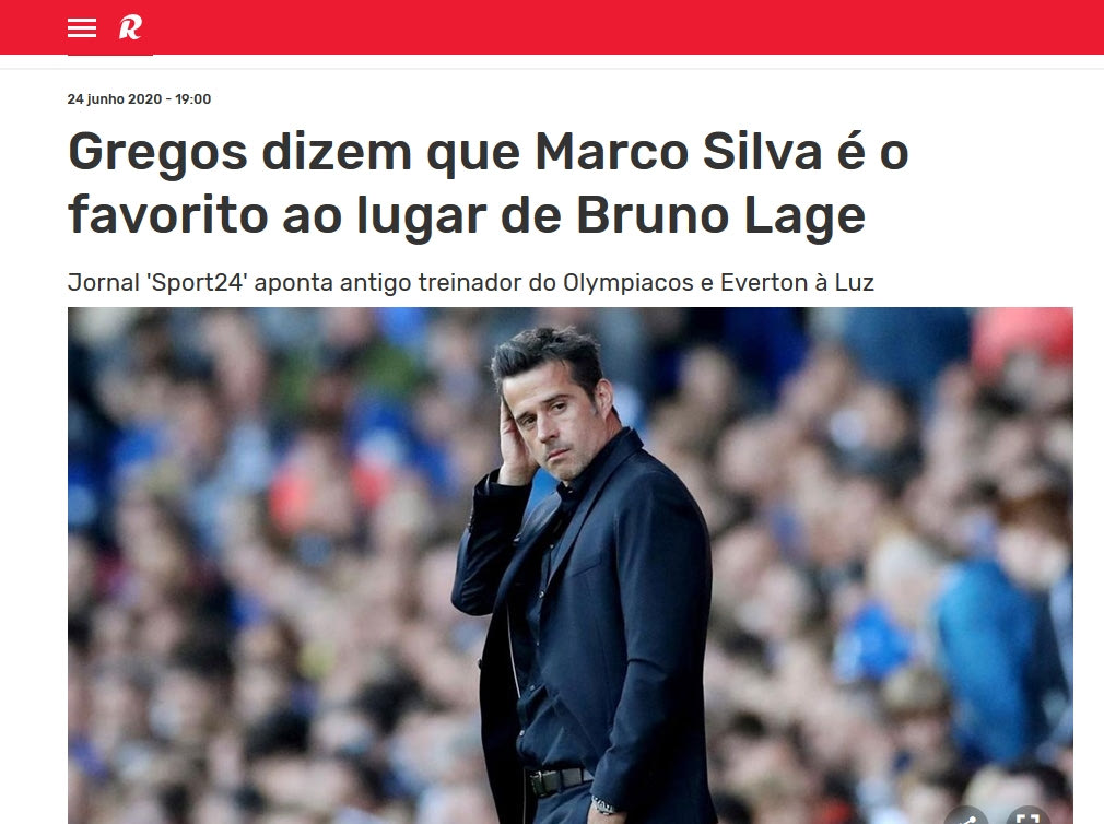 Οι πορτογαλικές "A Bola" και "Record" επικαλούνται το Sport24.gr για τον Μάρκο Σίλβα, ο οποίος είναι βασικός υποψήφιος για τον πάγκο της Μπενφίκα.