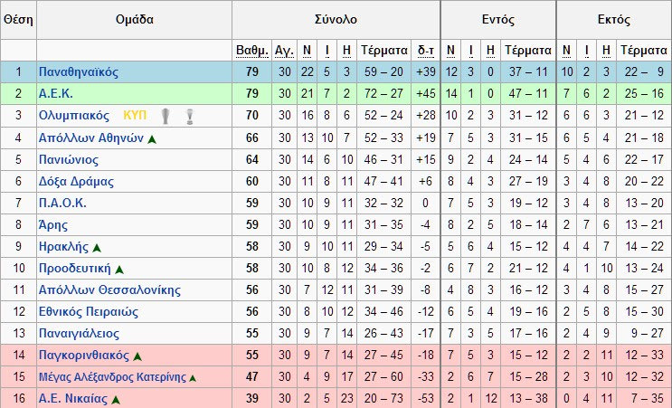Oι 4 πρώτες στο πρωτάθλημα της ΕΠΣ Αθηνών: Παναθηναϊκός, Πανιώνιος, ΑΕΚ και Απόλλων Αθ.