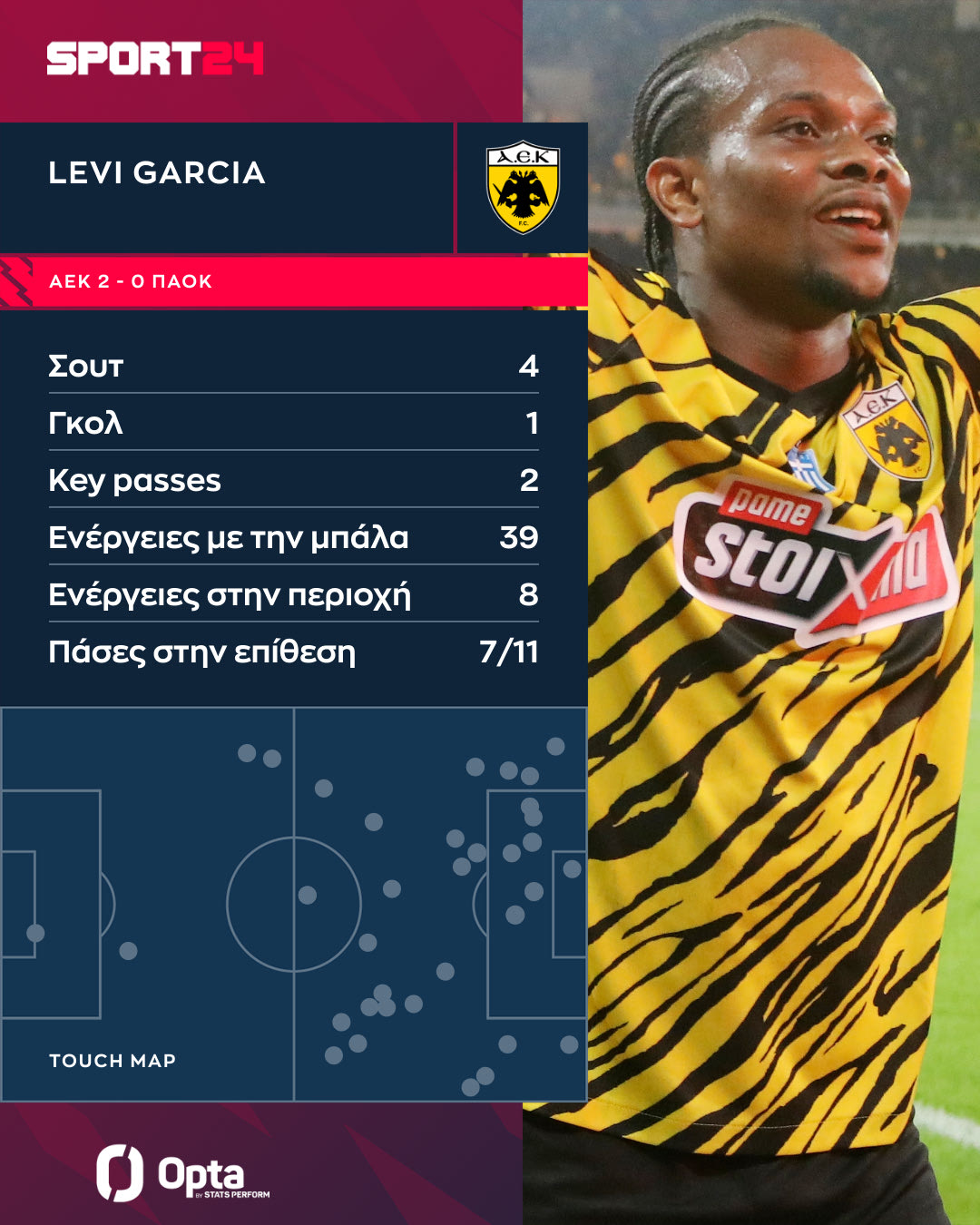 Η ΑΕΚ ήταν επιβλητική κόντρα στον ΠΑΟΚ, με τον Λιβάι Γκαρσία να κάνει και πάλι τη διαφορά, προχωρώντας σε ένα εντυπωσιακό ρεκόρ, απόρροια της αλλαγής θέσης, αλλά και της τρομερής αγωνιστικής κατάστασής του.