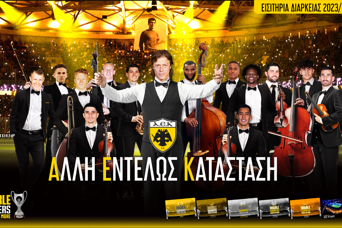 Η ΠΑΕ ΑΕΚ εξέδωσε ανακοίνωση για τα εισιτήρια διαρκείας για τη σεζόν 2023/24 με μια εντυπωσιακή φωτογραφία με την ορχήστρα της Ένωσης και τον Ματίας Αλμέιδα μαέστρο. Η Ένωση γνωστοποίησε όλες τις λεπτομέρειες για τα εισιτήρια διαρκείας. Τα φθηνότερα εκκινούν από τα 300 ευρώ για τις εγχώριες διοργανώσεις και 120 ευρώ για τις ευρωπαϊκές διοργανώσεις.