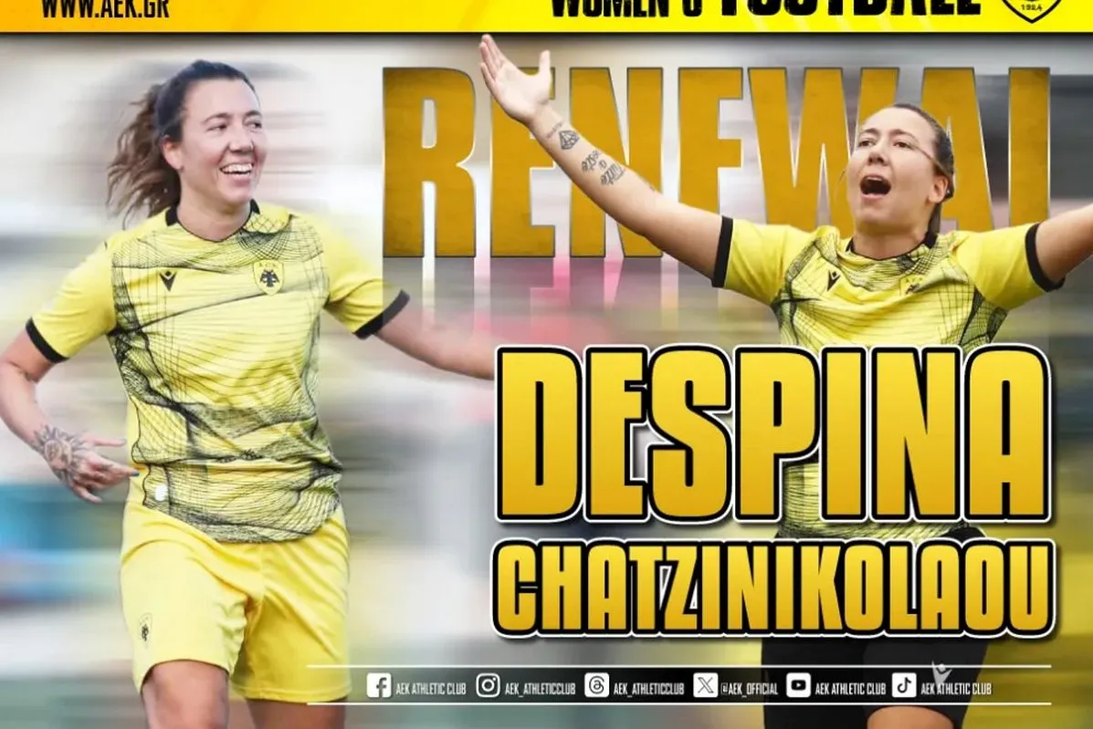 “H AEK βρίσκεται στην πολύ ευχάριστη θέση να ανακοινώσει την ανανέωση της συνεργασίας της με την Δέσποινα Χατζηνικολάου. Η 25χρονη (21/10/1999) διεθνής επιθετικός, υπέγραψε το νέο της συμβόλαιο και θα παραμείνει για τρίτη διαδοχική χρονιά στο δυναμικό της γυναικείας ομάδας Ποδοσφαίρου του Συλλόγου.