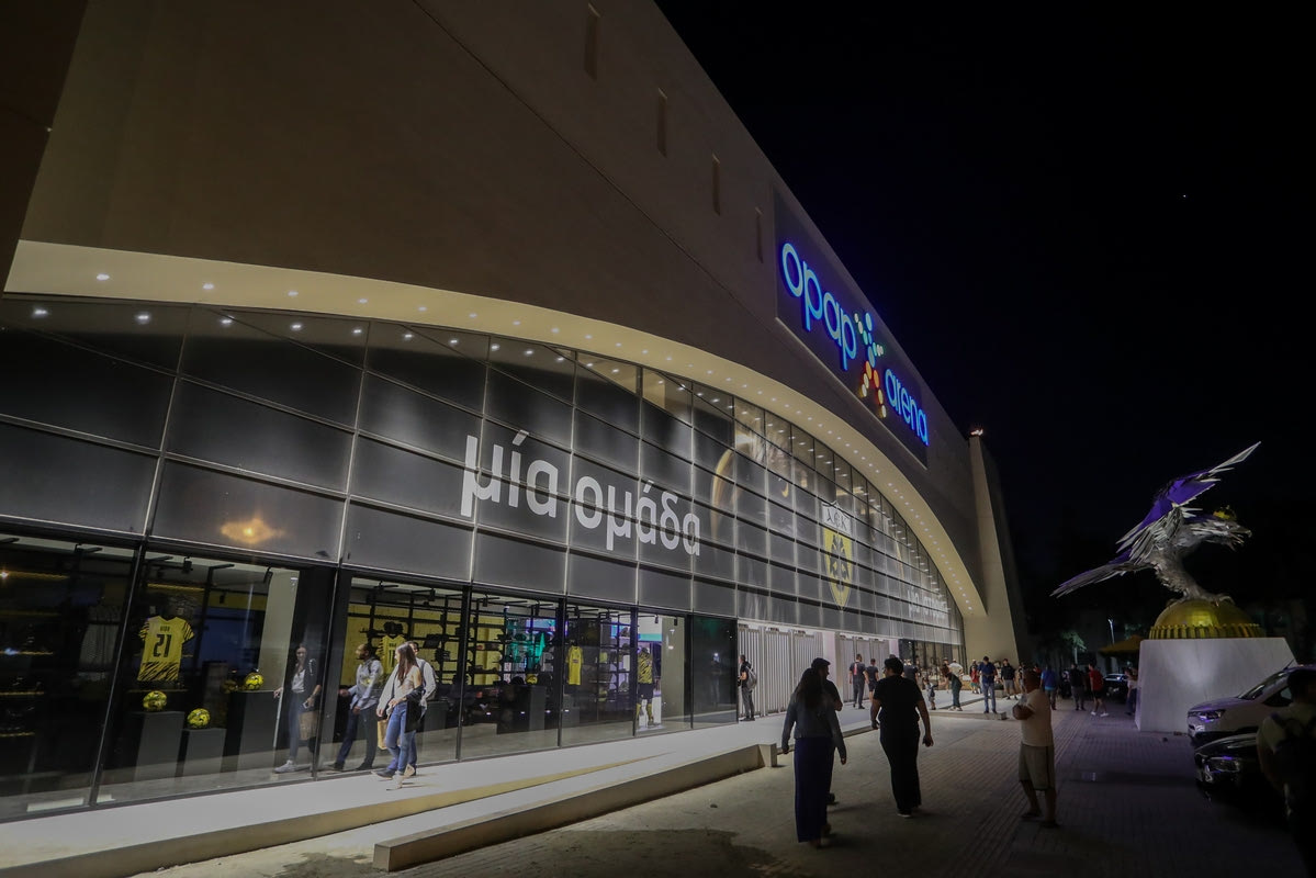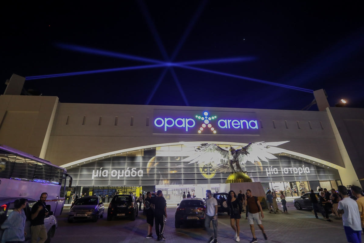 Οι ετοιμασίες για τα εγκαίνια της OPAP Arena συνεχίζονται πυρετωδώς με τις πρόβες εντός του γηπέδου, τον κόσμο να βρίσκεται εκτός και να περιμένει, ενώ την ίδια στιγμή άναψαν και οι δάδες στους πυλώνες της OPAP Arena.