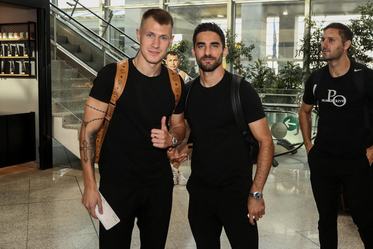 Οι Σιμάνσκι - Μοχαμάντι κατά την αναχώρηση της ΑΕΚ για το ματς με τη Μαρσέιγ Eurokinissi Sports