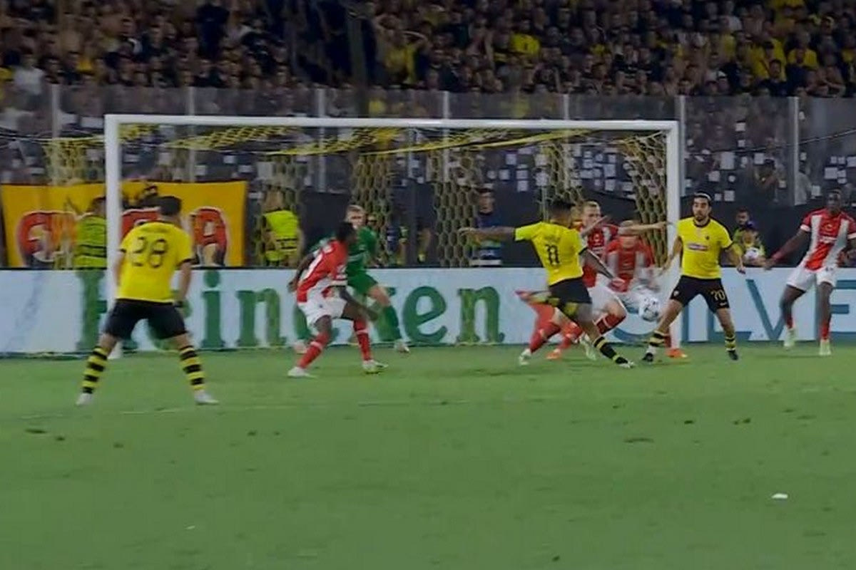 Σε σέντρα του Ελίασον από τα δεξιά, ο Αργεντινός την υποδέχθηκε όμορφα, την έφερε στο δεξί, έκανε και το σουτ και νίκησε τον Μπουτέ για να ισοφαρίσει για την ΑΕΚ.