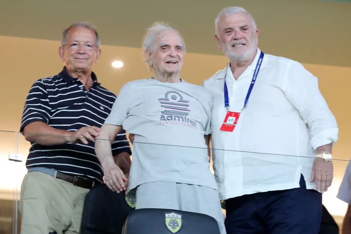 Στην OPAP Arena για να παρακολουθήσει την αναμέτρηση ανάμεσα στην ΑΕΚ και την Αντβέρπ βρίσκεται και ο 88χρονος Λευτέρης Παπαδόπουλος. Μάλιστα φιλοξενείται στην σουίτα του Δημήτρη Μελισσανίδη, ο οποίος τον καλωσόρισε με ιδιαίτερη θέρμη. Μαζί τους είναι και ο άλλοτε ποδοσφαιριστής της ΑΕΚ, Λάκης Νικολάου.