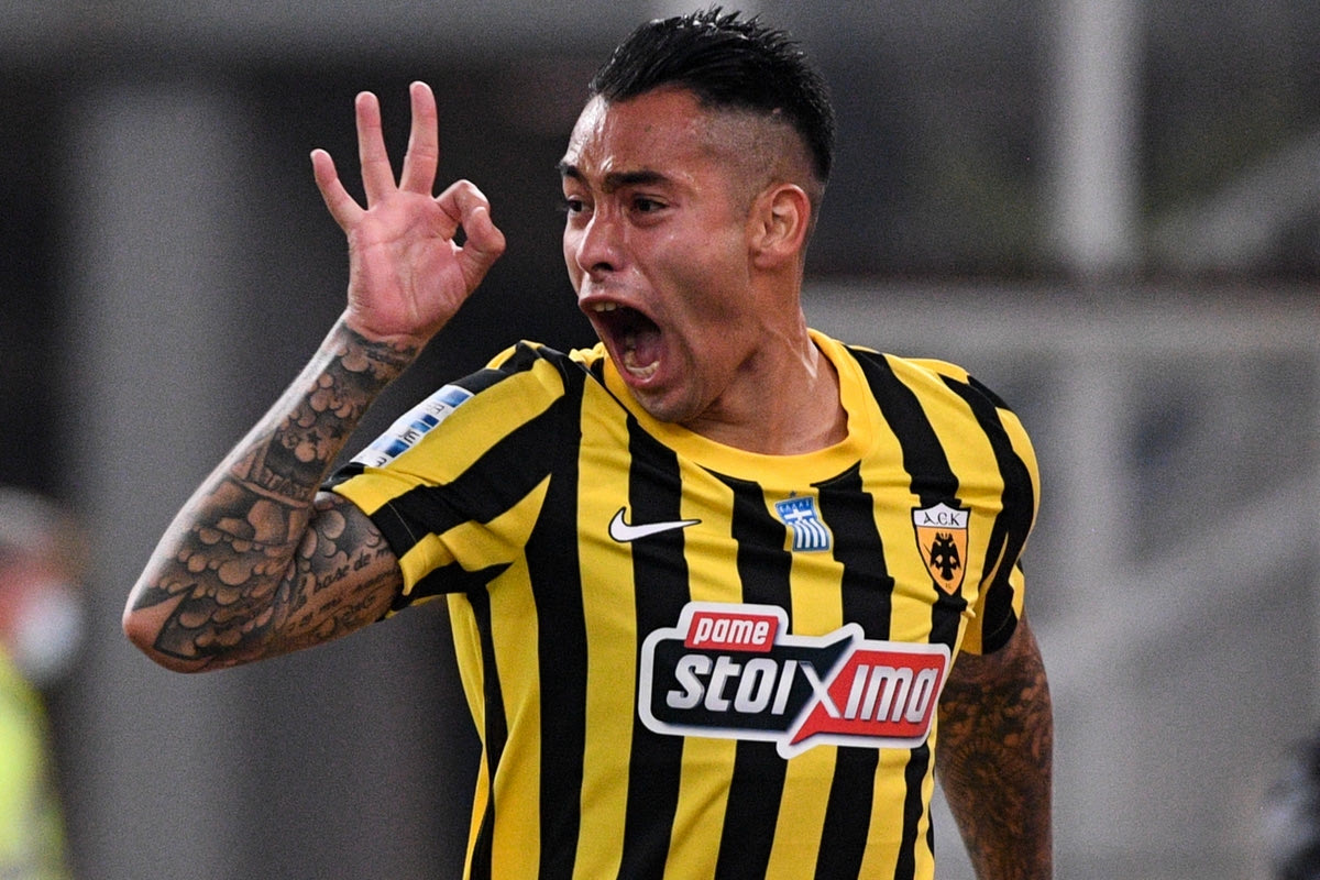 Ο Σέρχιο Αραούχο πανηγυρίζει γκολ του στο ντέρμπι με τον Ολυμπιακό