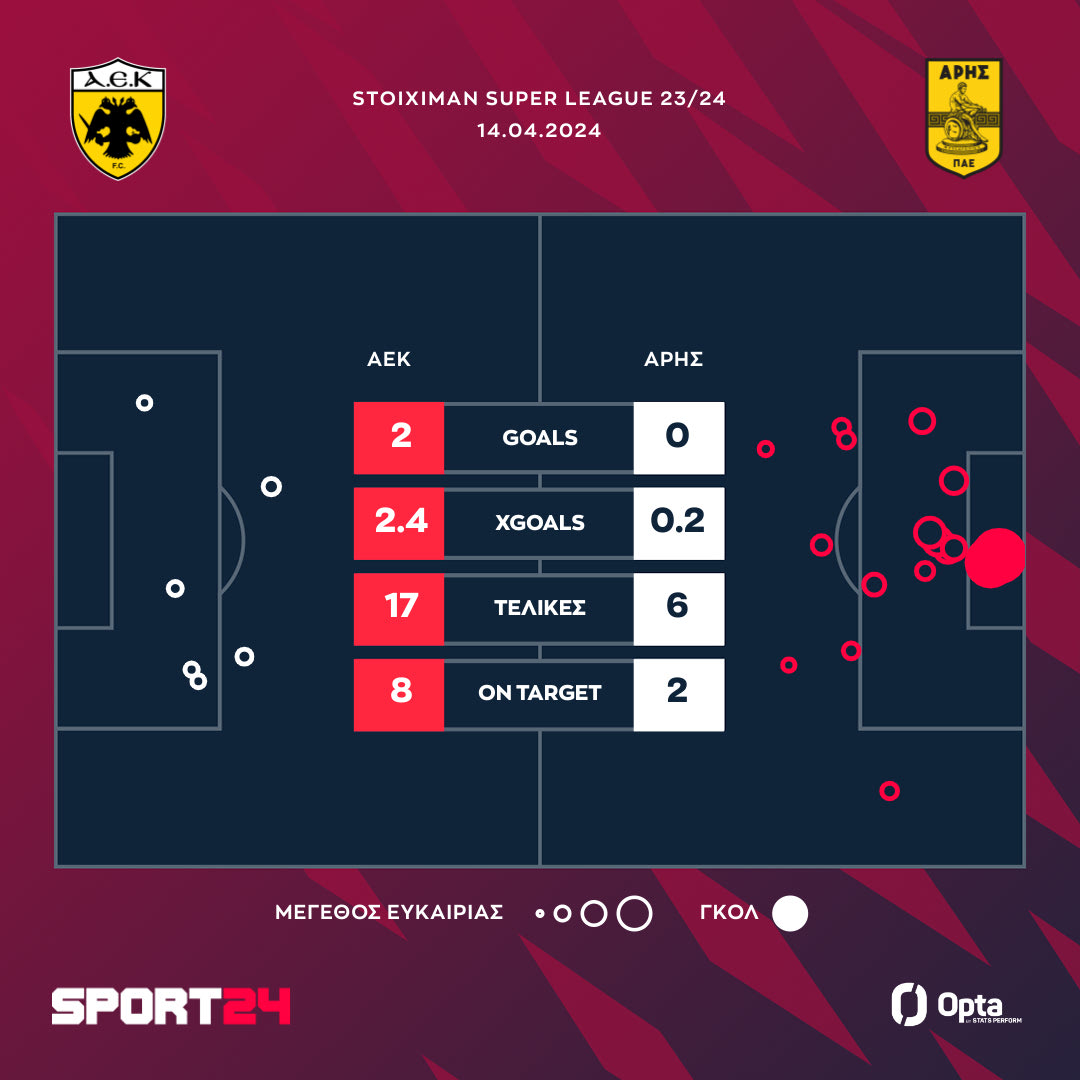 Ο Άρης είχε μια τελική στο 85′ με τον Μορόν, αλλά αυτή πέρασε ψηλά. Η ανησυχία στο στρατόπεδο της ΑΕΚ έχει να κάνει με τον Λάζαρο Ρότα που χτύπησε αλλά ολοκλήρωσε τον αγώνα.