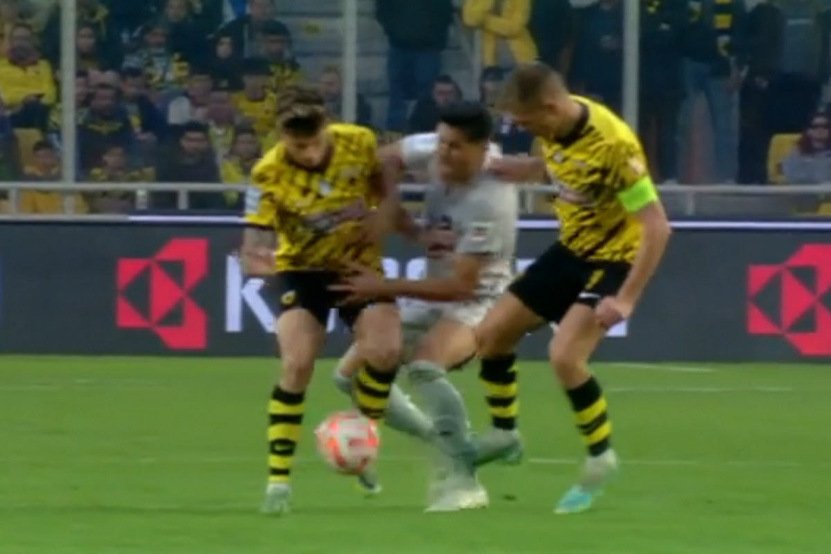 Στο 68ο λεπτό της αναμέτρησης ανάμεσα στην ΑΕΚ και τον Άρη ο διαιτητής έδωσε πέναλτι στην Ένωση για χέρι στον Ενκουλού, όμως το πήρε πίσω για φάουλ στον Πάλμα στη μεσαία γραμμή.