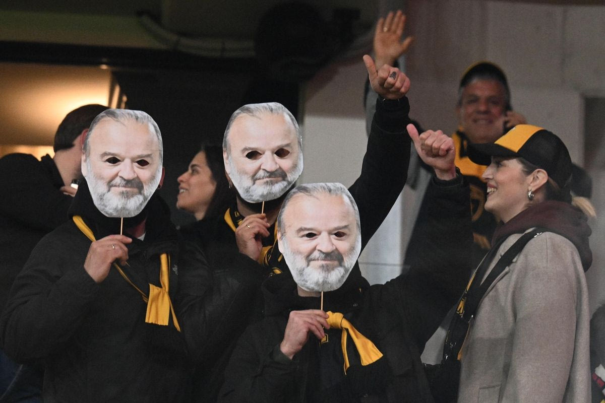 Φίλοι της ΑΕΚ πήγαν στην OPAP Arena για να δουν το παιχνίδι με την Athens Kallithea, έχοντας μαζί τους μάσκα του Μάριου Ηλιόπουλου.