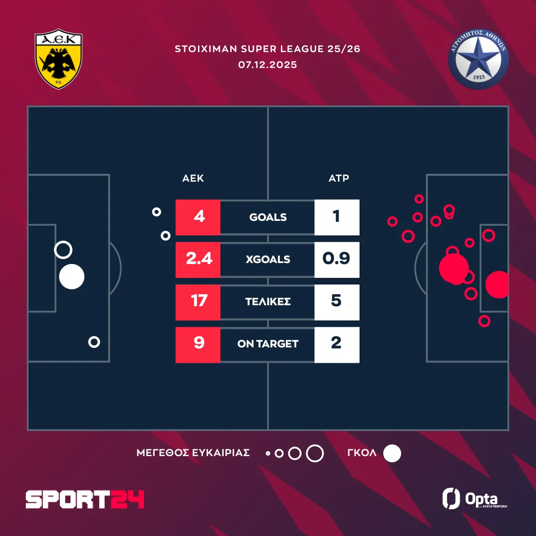 Η ΑΕΚ με αυτό το τρίποντο έφτασε τους 31 και είναι στο -3 από τον Ολυμπιακό και το -1 από τον ΠΑΟΚ, ενώ ο Ατρόμητος παρέμεινε στους εννιά βαθμούς σε ισοβαθμία με τον ΟΦΗ και στο +1 από την ΑΕΛ Novibet. Στο κιτρινόμαυρο στρατόπεδο ωστόσο έχουν παγώσει λόγω του τραυματισμού του Μιγιάτ Γκατσίνοβιτς στο 60ο λεπτό.