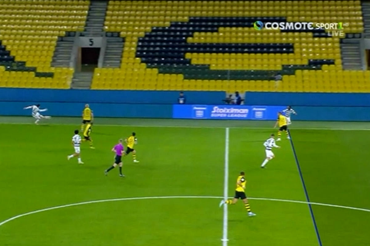 Μάλιστα, το γκολ ελέγχθηκε για οφσάιντ, με τον επιθετικό, όμως, του Ατρόμητου να καλύπτεται και το διαιτητή της αναμέτρησης να δείχνει τη σέντρα.