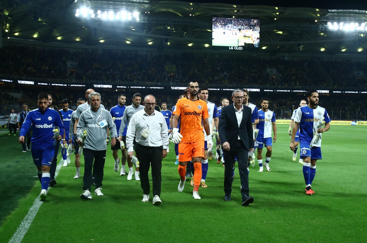 Οι παίκτες του Ατρομήτου πριν από την έναρξη της αναμέτρησης με την ΑΕΚ άφησαν λουλούδια στην μνήμη του Μιχάλη Κατσούρη.