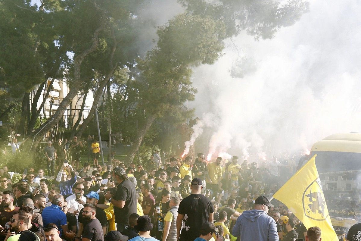 Η Ελληνική Αστυνομία έβαλε μπλόκο στο κάλεσμα των οπαδών της ΑΕΚ για συγκέντρωση στο ξενοδοχείο της ομάδας στη Νέα Ερυθραία.