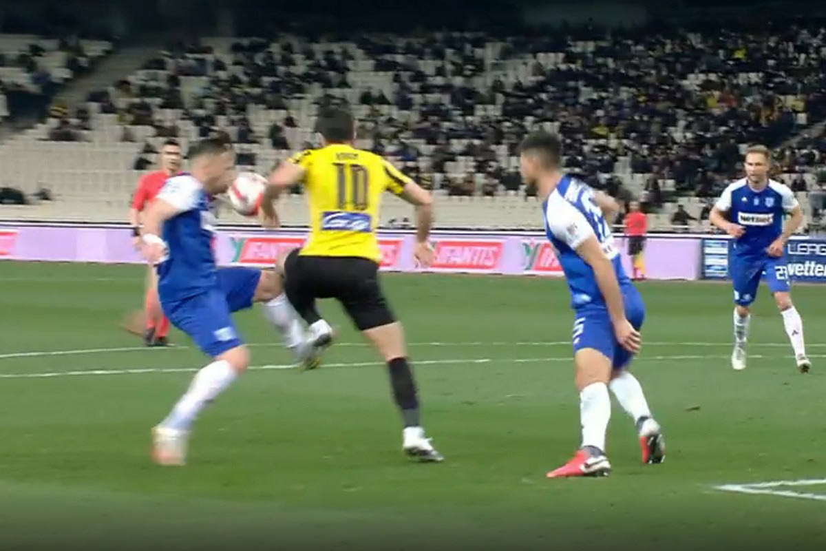 Η ΑΕΚ ζήτησε πέναλτι σε μαρκάρισμα του Καραχάλιο στον Ανσαριφάρντ, με τον Παπαδόπουλο και το VAR να μην καταλογίζουν την παράβαση, προκαλώντας τα παράπονα των ανρθώπων της Ένωσης.