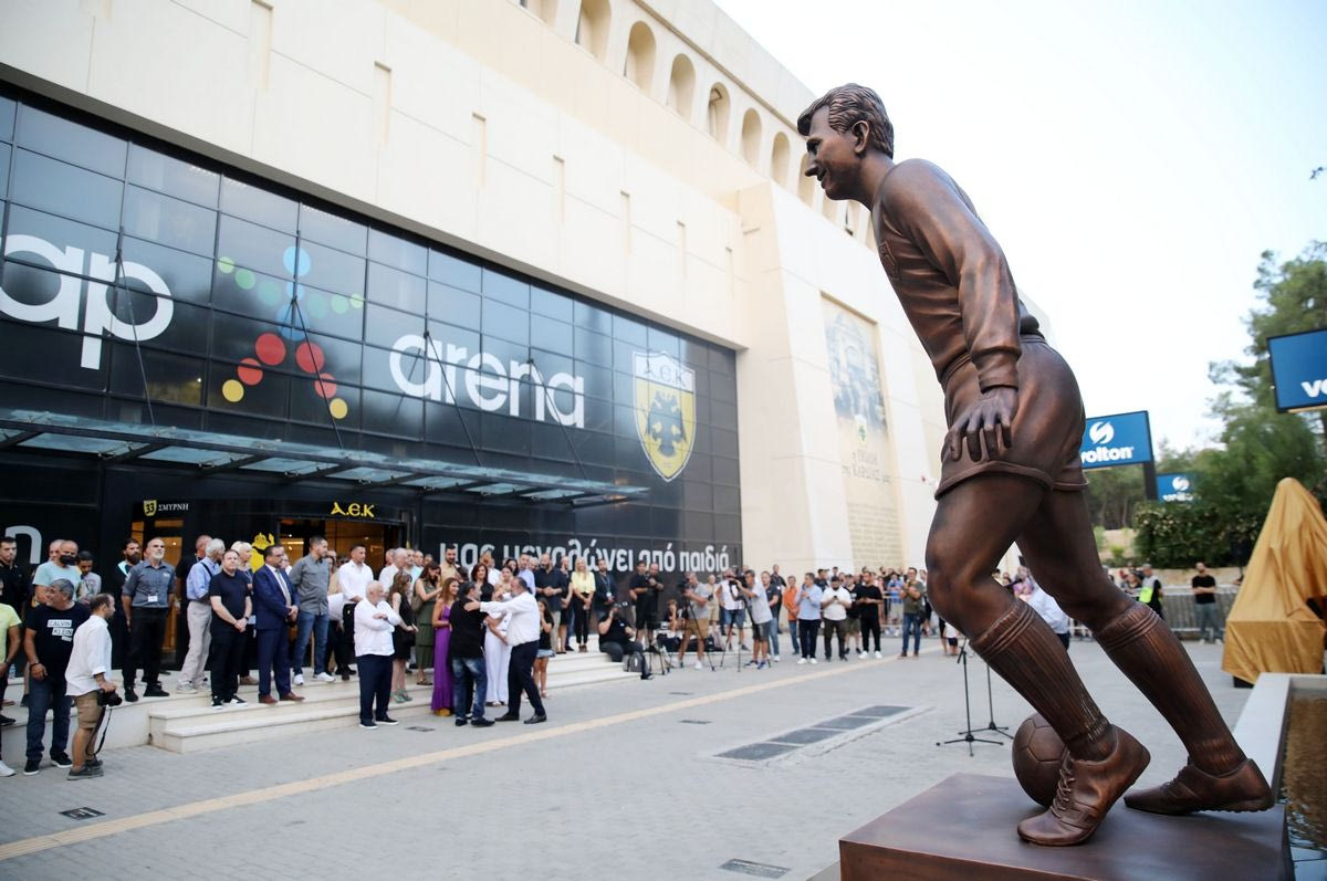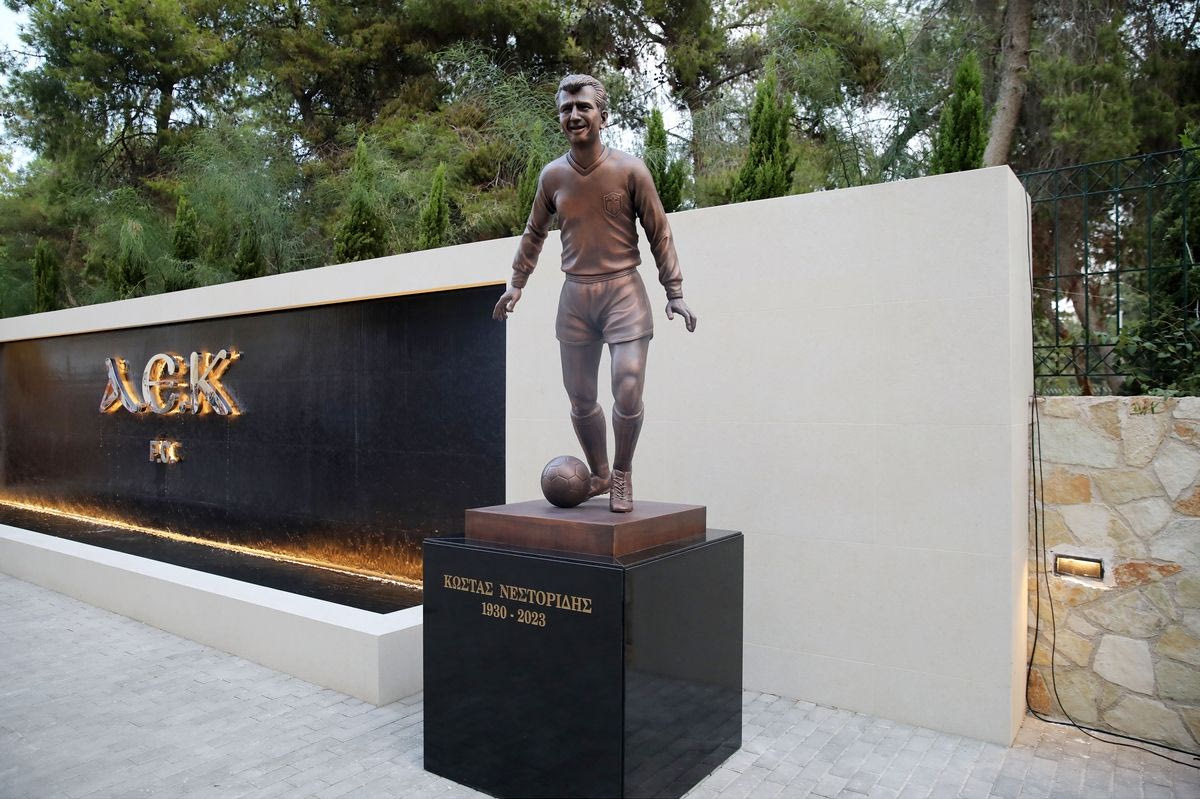 Τα αγάλματα των Κώστα Νεστορίδη και Μίμη Παπαϊωάννου πήραν πλέον τη θέση τους έξω από την OPAP Arena, με την ΑΕΚ να κάνει τα αποκαλυπτήρια το απόγευμα της Τρίτης (23/7).