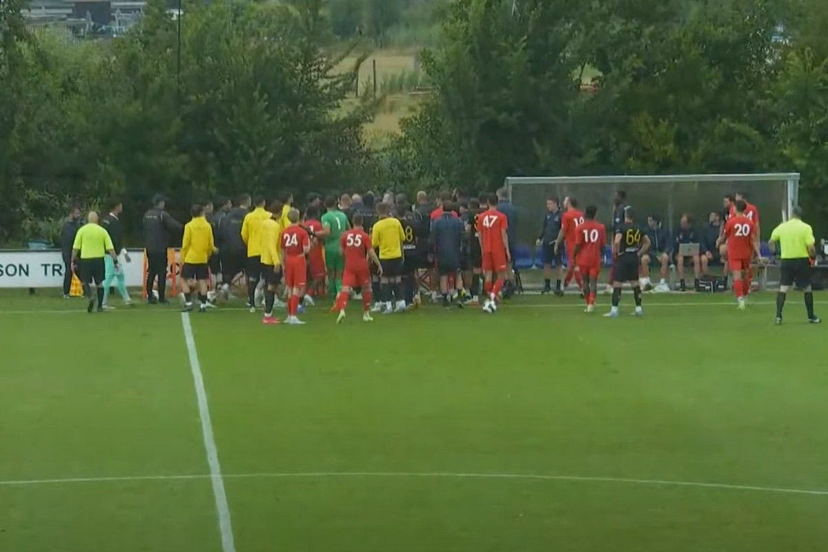 Στο τέλος του πρώτου μέρους, ωστόσο, σημειώθηκε μικρή σύρραξη ανάμεσα στις αποστολές των δύο ομάδων, με τον διαιτητή να σφυρίζει τη λήξη και να τις στέλνει τα αποδυτήρια, προκειμένου να ηρεμήσουν οι τόνοι.