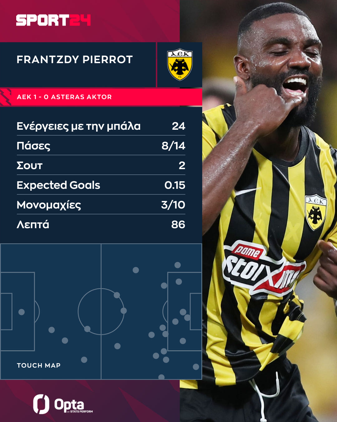 Ο Φραντζί Πιερό καθάρισε για την ΑΕΚ κόντρα στον Αστέρα AKTOR, χωρίς να γίνει περαιτέρω αισθητός στο ματς, ενώ ο Τζέιμς Πενράις συνεχίζει να εντυπωσιάζει στη Stoiximan Super League.