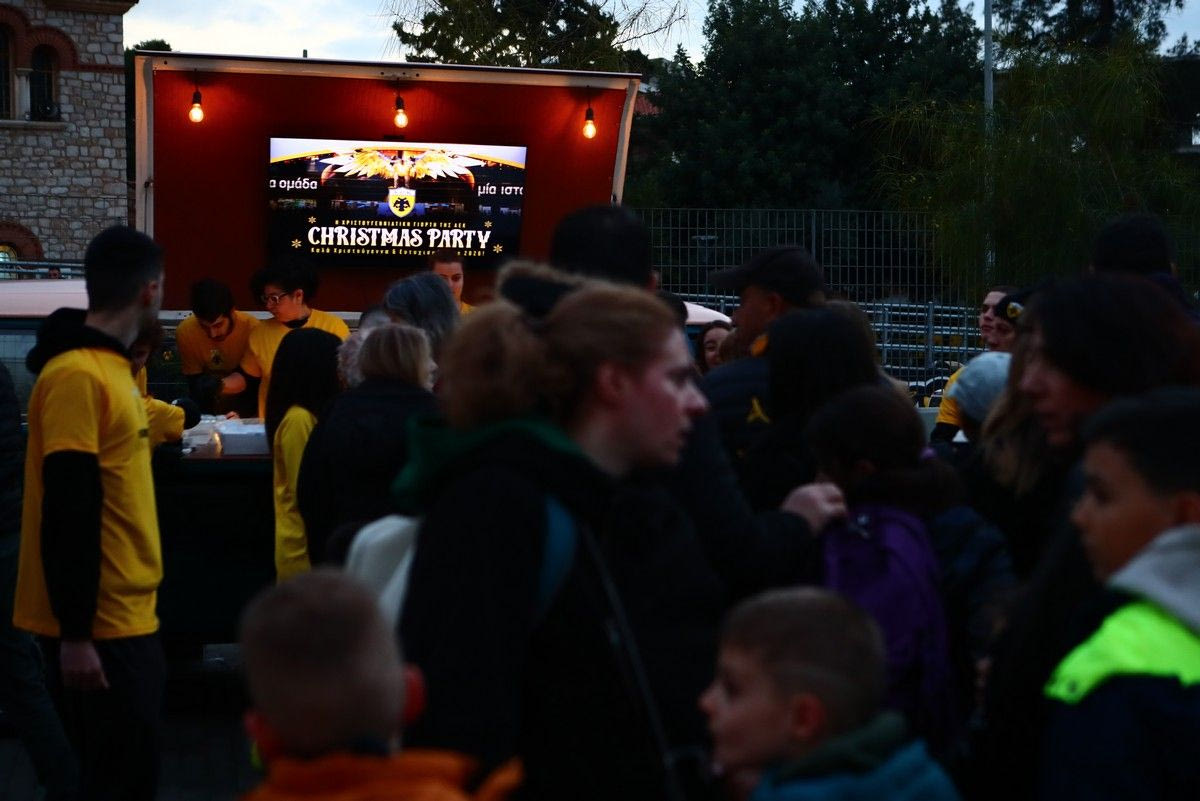 Οι φίλοι της ΑΕΚ βρέθηκαν από νωρίς στην OPAP Arena και συμμετείχαν στις χριστουγεννιάτικες εορταστικές εκδηλώσεις της Ένωσης που ξεκίνησαν στις 16:00 μέχρι και λίγο πριν από την έναρξη του αγώνα.