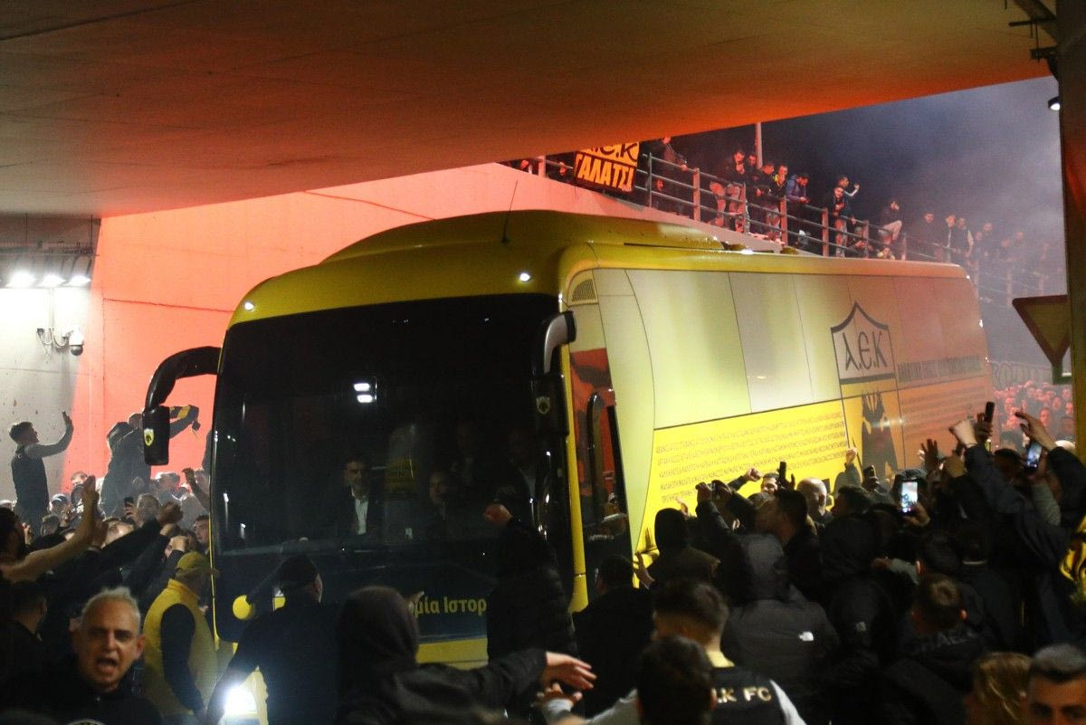 Οι παίκτες της ΑΕΚ αποθεώθηκαν από χιλιάδες οπαδούς της στη Νέα Φιλαδέλφεια, μετά την πολύ σημαντική νίκη της Ένωσης επί του Ολυμπιακού για το 1-0.