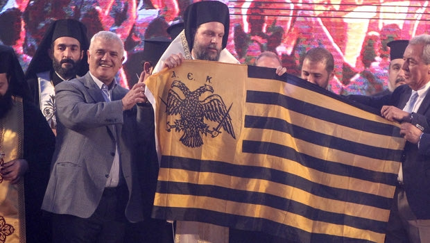"Η ΑΓΙΑ ΣΟΦΙΑ ΥΠΟΔΕΧΕΤΑΙ ΤΟ ΧΩΜΑ ΑΠΟ ΤΙΣ ΑΛΗΣΜΟΝΗΤΕΣ ΠΑΤΡΙΔΕΣ" ΤΕΛΕΤΗ ΓΙΑ ΤΟ ΧΩΜΑ ΑΠΟ ΤΙΣ ΑΛΗΣΜΟΝΗΤΕΣ ΠΑΤΡΙΔΕΣ ΠΟΥ ΘΑ ΡΙΧΤΕΙ ΣΤΑ ΘΕΜΕΛΙΑ ΤΟΥ ΝΕΟΥ ΓΗΠΕΔΟΥ ΤΗΣ ΑΕΚ (ΦΩΤΟΓΡΑΦΙΑ: ΚΩΣΤΑΣ ΜΑΚΡΥΔΗΜΑΣ / EUROKINISSI)