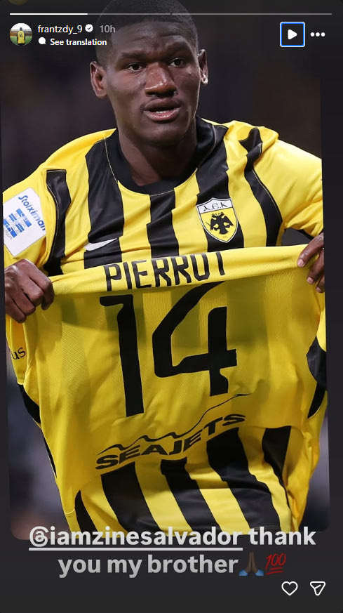 Ο υψηλόσωμος Αϊτινός επιθετικός ευχαρίστησε τον Ζίνι μέσω story στο Instagram. “Ευχαριστώ αδερφέ μου”, έγραψε ο Πιερό.