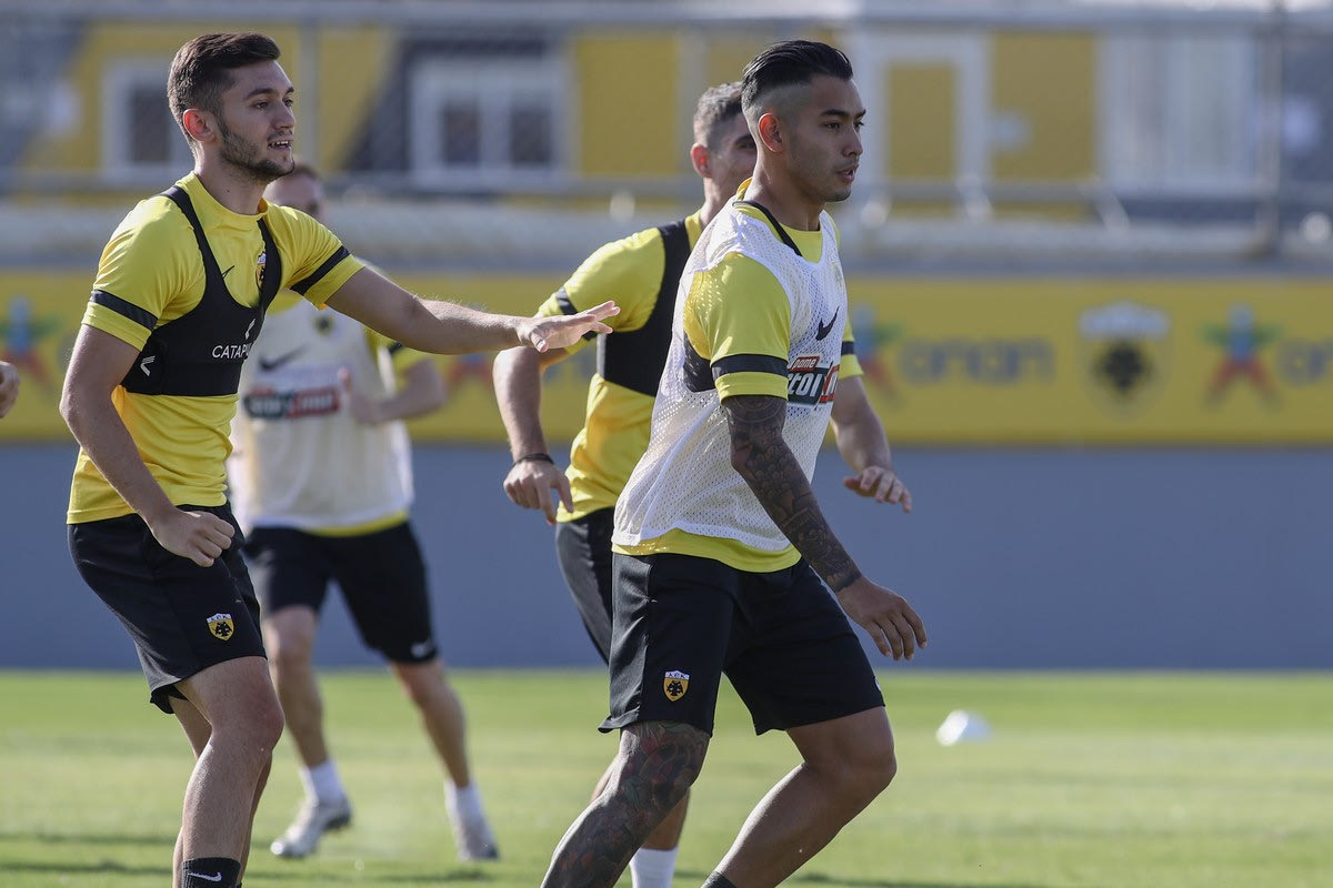 “Ολοκληρώθηκε η σημερινή προπόνηση των ποδοσφαιριστών της ΑΕΚ στα Σπάτα.