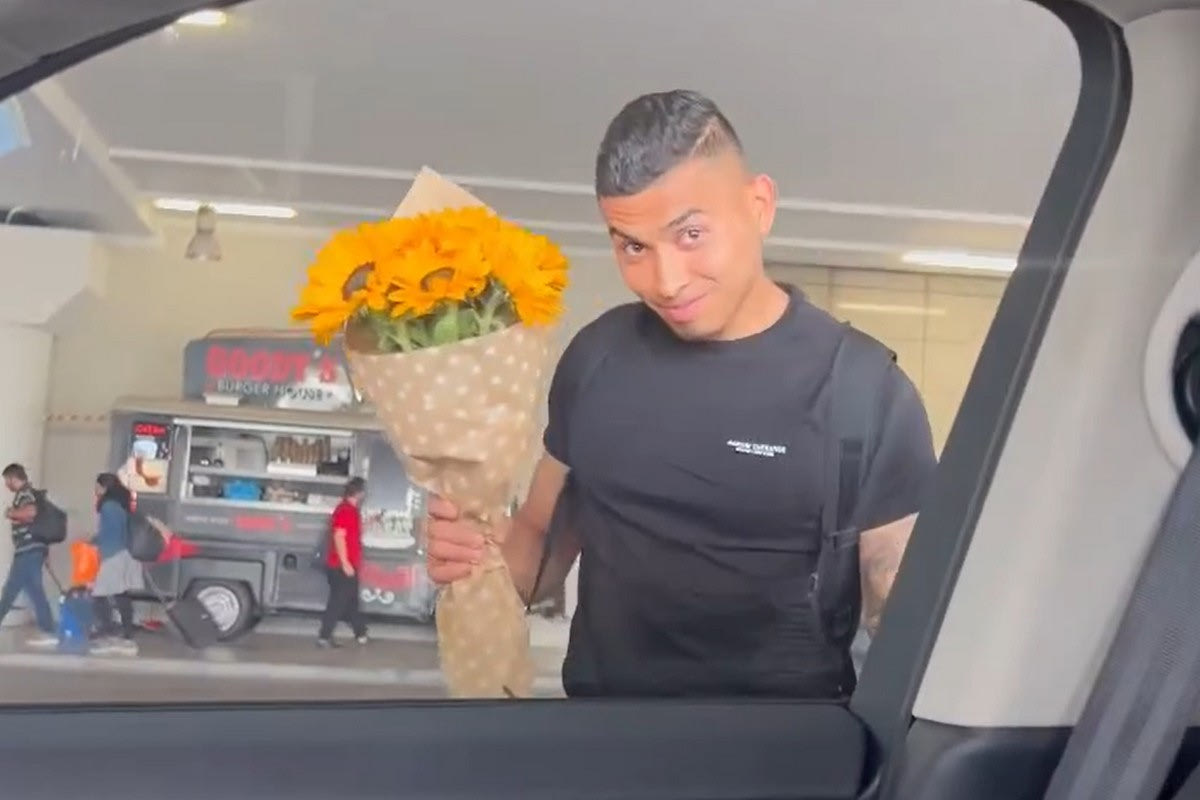 Ο Μεξικανός ποδοσφαιριστής της είχε πάρει ένα μπουκέτο λουλούδια. Η ίδια γνωστοποίησε το γεγονός αναρτώντας στο Instagram ένα video με την στιγμή που ο Πινέδα βγαίνει από το αεροδρόμιο και κατευθυνόμενος προς το αυτοκίνητο κρατούσε τα λουλούδια.