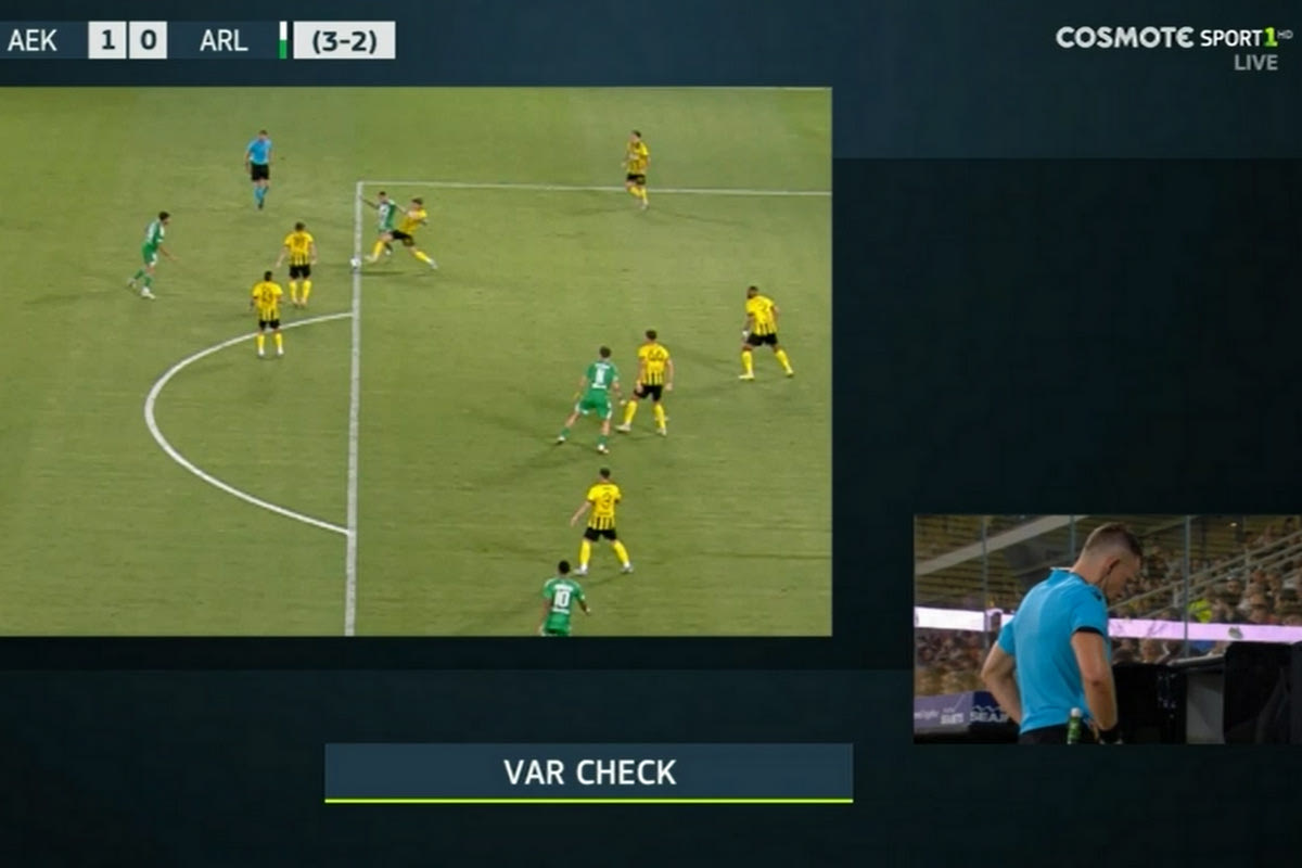 ΑΕΚ: Η φάση που ο διαιτητής έδωσε πέναλτι υπέρ του Άρη Λεμεσού μετά από παρέμβαση του VAR, ισοφάρισαν την ένωση οι Κύπριοι σε 1-1