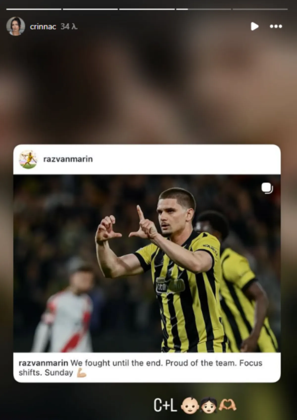 ΑΕΚ: Η γυναίκα του Μαρίν αποκάλυψε που αφιέρωσε ο Ρουμάνος το γκολ του με τη Ράγιο