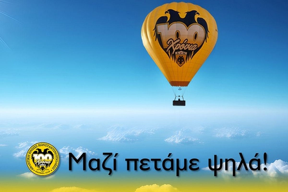 Η ΑΕΚ το Σάββατος στις 13 Απριλίου θα γιορτάσει τα 100 χρόνια ζωής της. Η κιτρινόμαυρη ΠΑΕ δημιούργησε ένα τεράστιο αερόστατο με τα χρώματα και το επετειακό σήμα της ομάδας και θα προβεί σε μια σειρά συμβολικών πτήσεων ανά την Ελλάδα.